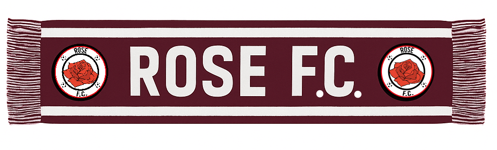 With Rose FC logo. Minimum order quantity for bobble hats & scarves is 10 units.